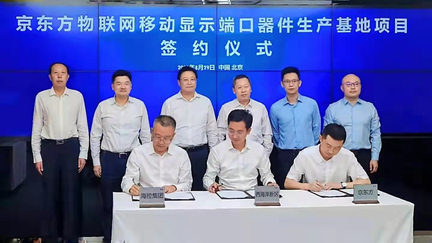 8月29日,青島西海岸新區(qū)管委、海控集團(tuán)和京東方科技集團(tuán)股份有限公司簽署京東方物聯(lián)網(wǎng)移動顯示端口器件生產(chǎn)基地項(xiàng)目投資框架協(xié)議,將在青島西海岸新區(qū)投資建設(shè)全球最大的移動顯示模組單體工廠。