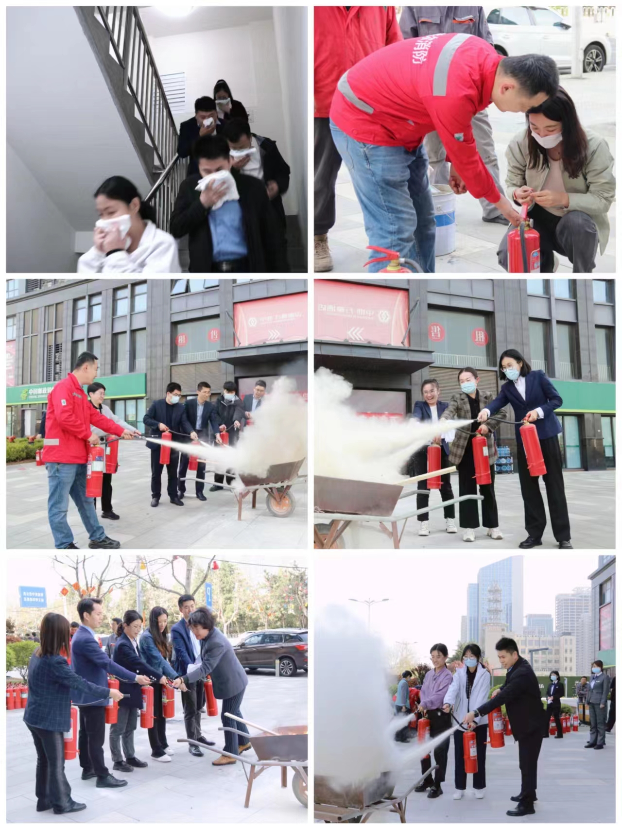 隨后,集團聯合辦公樓物業公司,共同開展消防應急演練,模擬17樓辦公區出現火情,全集團在現場指揮組織下有序疏散。演練結束后,全體人員在指定地點參加了消防器材操作培訓,練習滅火器的規范使用方法。